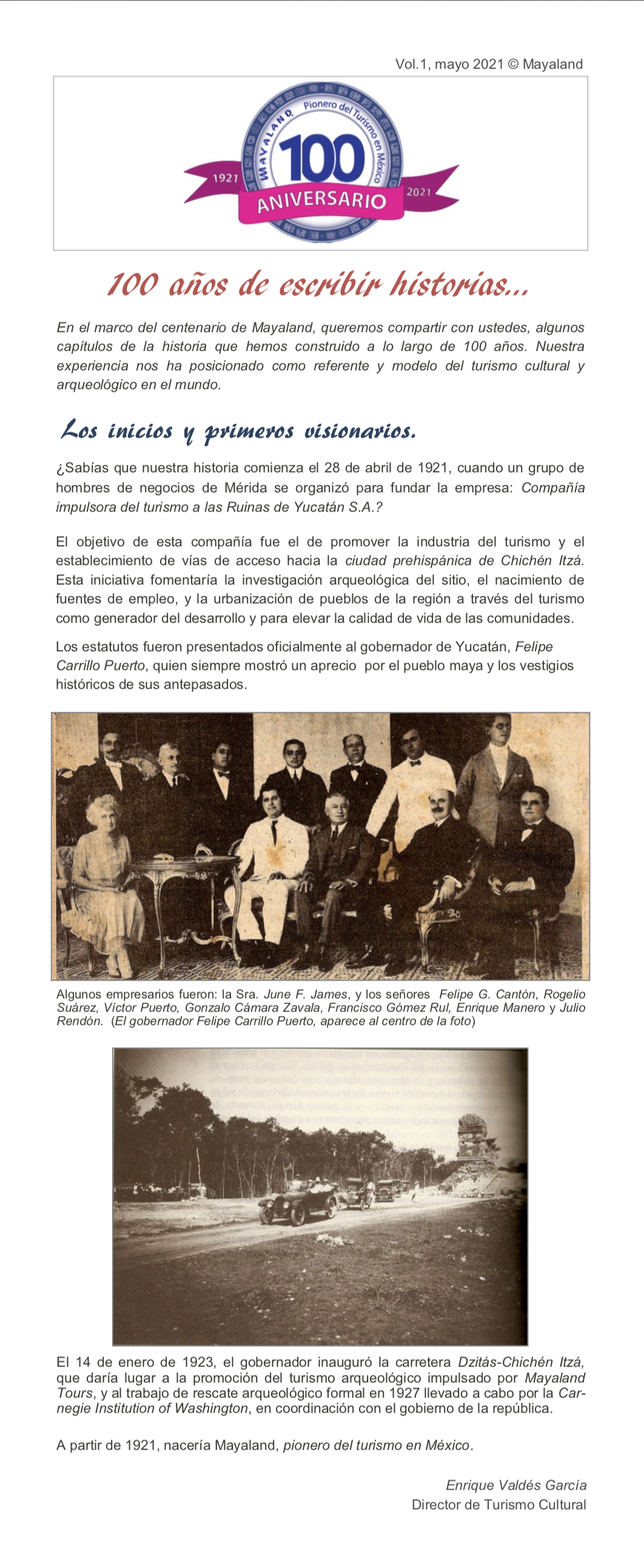 Los inicios y primeros visionarios Publicado por Merida editores | Ago 20, 2021 | Mayaland Por: Enrique Valdés García Comparte esto: Haz clic para compartir en X (Se abre en una ventana nueva) X Haz clic para compartir en Facebook (Se abre en una ventana nueva) Facebook Haz clic para compartir en WhatsApp (Se abre en una ventana nueva) WhatsApp Publicaciones relacionadas: Primeros folletos de Mayaland Tours «El inicio del Mayaland Lodge y sus primeros turistas» Don Desiderio Fernando Barbachano Bolio Antecedentes del turismo arqueológico Chichen Itzá y el saqueo arqueológico