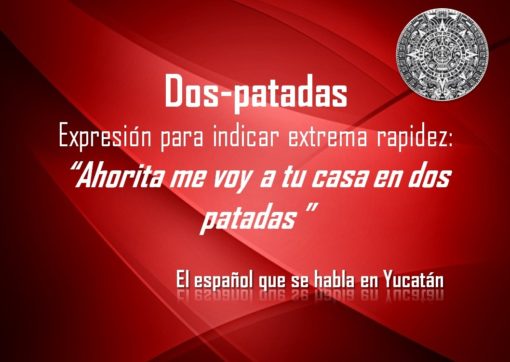 DOS PATADAS: «AHORITA ME VOY A TU CASA EN DOS PATADAS» Publicado por meridadeyucatan.com | Ene 2, 2019 | El Español que se Habla en Yucatán Comparte esto: Haz clic para compartir en X (Se abre en una ventana nueva) X Haz clic para compartir en Facebook (Se abre en una ventana nueva) Facebook Haz clic para compartir en WhatsApp (Se abre en una ventana nueva) WhatsApp Publicaciones relacionadas: EL MINARETE LA CASA DE LOS LADRILLOS O CASA CÁRDENAS EN DOS TIEMPOS LA CASA DEL AGUACIL EN DOS TIEMPOS CASA DE DON FELIPE G. CANTÓN (LA UNIÓN) EN DOS TIEMPOS LA CASA DE DON SIXTO GARCÍA O DE LAS ALONZO EN DOS TIEMPOS