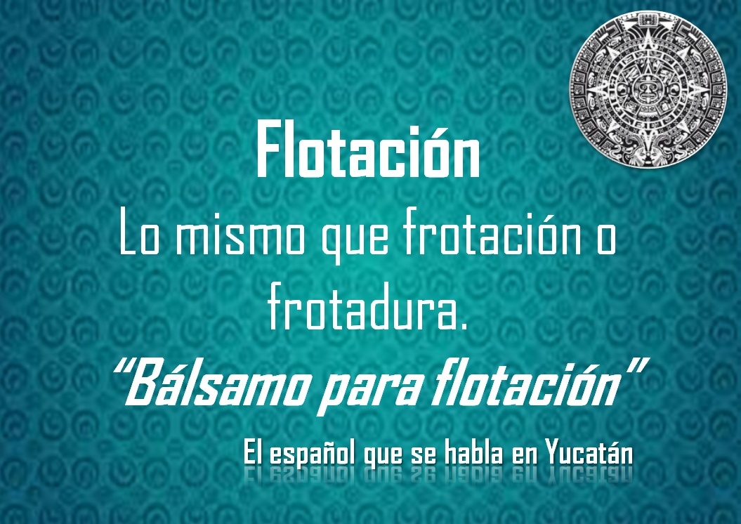 FLOTACIÓN: «BÁLSAMO PARA FLOTACIÓN» Publicado por meridadeyucatan.com | Ene 14, 2019 | El Español que se Habla en Yucatán Comparte esto: Haz clic para compartir en X (Se abre en una ventana nueva) X Haz clic para compartir en Facebook (Se abre en una ventana nueva) Facebook Haz clic para compartir en WhatsApp (Se abre en una ventana nueva) WhatsApp Publicaciones relacionadas: MÉRIDA, LA MEJOR CIUDAD DE MÉXICO PARA VIVIR EL INSTITUTO LITERARIO PARA NIÑAS DE MÉRIDA TRES LÍNEAS PARA UN RETRATO: CHIKRI ABIMERHI O EL VALOR DE LA CALIDAD UN MUSEO PARA LA OBRA DEL ESCULTOR YUCATECO HUMBERTO PERAZA TUIT: EL GENIO NO SIRVE PARA LA VIDA, SOLO PARA LA OBRA