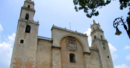 El Teniente de Gobernador y Capitán General de las Provincias de Yucatán, don Francisco de Montejo, “El Mozo”, fundó la ciudad de Mérida un 6 de enero de 1542. En el acta fundacional Montejo dice: “Como católico….lo primero que se ordenó fue escoger sitio y lugar para construir iglesia”. A pesar de este mandamiento de la primera hora solo se pudo levantar una iglesia de material vulnerable, era de techumbre de paja. Finalmente, en 1599, cuando estaba fresco el material de construcción, el Br. Juan de Izquierdo, séptimo Obispo de Yucatán, le escribió al rey de España: “El templo ha salido el mejor de todas las Indias, porque en treinta años que tengo de servir a Vuestra Majestad en el Perú y la Nueva España, no he visto cosa semejante”. Apenas si se tiene que destacar la redacción: Su Ilustrísima no dice servir a Jesucristo ni a su Santa Iglesia, se protesta servidor del rey en las Indias. Por lo demás se le nota eufórico y satisfecho con la obra. En 1929 el arquitecto Federico E. Mariscal dijo: “La fachada de la catedral de Mérida, imposible de confundirse con otras, no tiene ninguna semejanza con las de nuestras catedrales de otras regiones del país; los muros lisos, extraordinariamente elevados; las portadas pequeñas en relación con la gran altura de los muros y , en el centro, una especie de gran arco triunfal con enorme escudo con las armas reales españolas, mismo que en 1822 fue borrado a cincel y sustituido por el águila coronada del Primer Imperio Mexicano, aunque conservó en torno Gran Collar de Toisón de Oro ”. La descripción de Mariscal muestra a la catedral de Mérida como una construcción singular, más que de gran valor estético. Quizás faltó destacar que todo el conjunto es severo, incluido el interior. Los pilares , las capillas interiores, la nave central, en fin, todo es de marcada austeridad. A propósito del escudo borrado a cincel don Justo Sierra O´Reilly dijo : “Feísimo emplasto, en que se esculpieron las armas nacionales, primero con el águila coronada, y después ocultando la corona tras una capa de yeso y cal”.