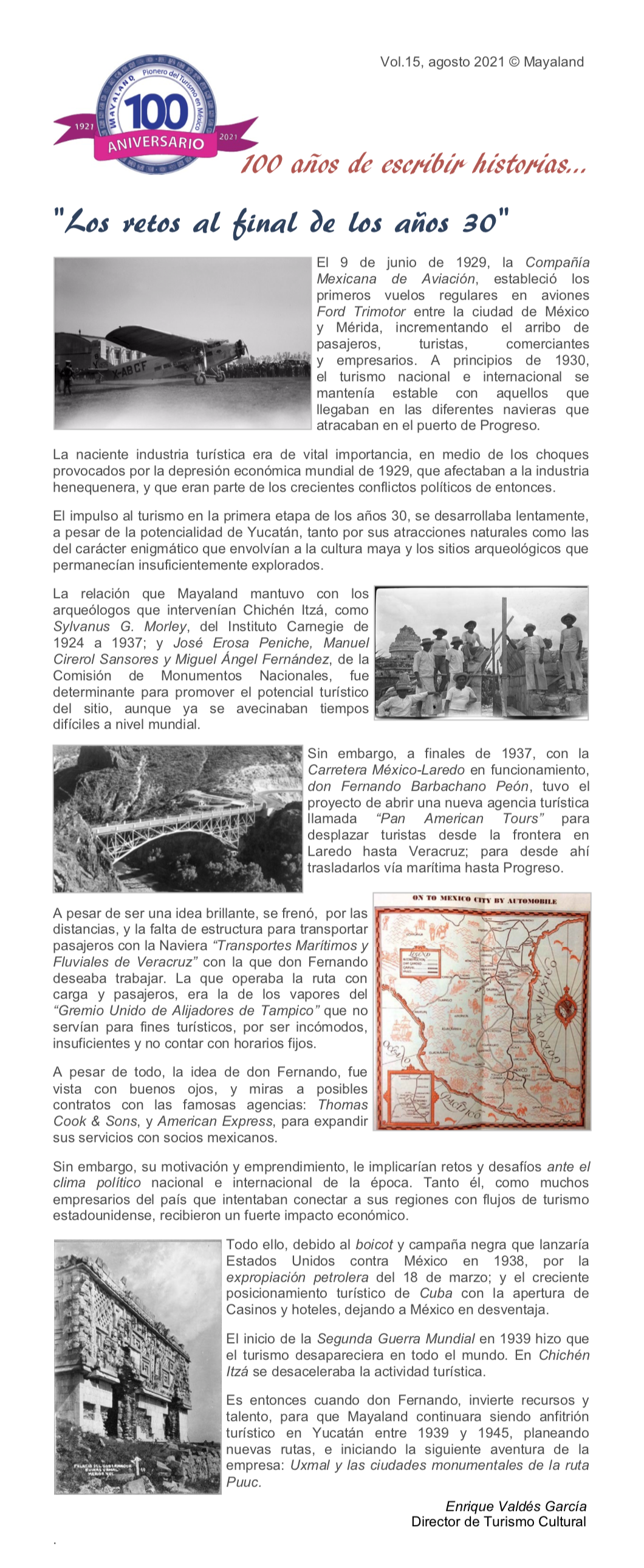 Los retos al final de los años 30 Publicado por Merida editores | Ago 17, 2021 | Mayaland Por: Enrique Valdés García Comparte esto: Haz clic para compartir en X (Se abre en una ventana nueva) X Haz clic para compartir en Facebook (Se abre en una ventana nueva) Facebook Haz clic para compartir en WhatsApp (Se abre en una ventana nueva) WhatsApp Publicaciones relacionadas: El arqueólogo Sylvanus G. Morley, y la construcción del Mayaland Lodge Tarjetas postales yucatecas y Mayaland Primeros folletos de Mayaland Tours «El inicio del Mayaland Lodge y sus primeros turistas» Los inicios y primeros visionarios